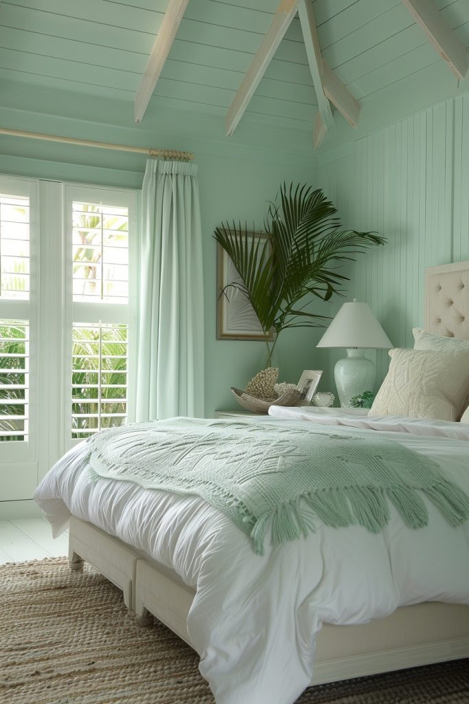 An Island Breeze Sanctuary emphasizes natural ventilation and light to mimic the feel of a breezy, open-air island hut. This design uses light fabrics, wide, unobstructed windows, and often a stylish ceiling fan to help circulate the air, keeping the room cool and comfortable. The decor is minimal but includes touches like woven mats and lightweight drapes that are designed to sway with the breeze. This style is perfect for those who want their bedroom to feel like an airy, open shelter.